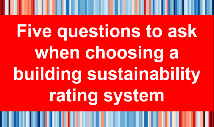 Recently I was asked to present on sustainable building rating systems in a webinar organised by the UN. There are now many different systems so it is becoming increasingly difficult to choose and distinguish between these systems. My presentation, therefore, … Continue reading 5 questions to ask when choosing a sustainable building rating system